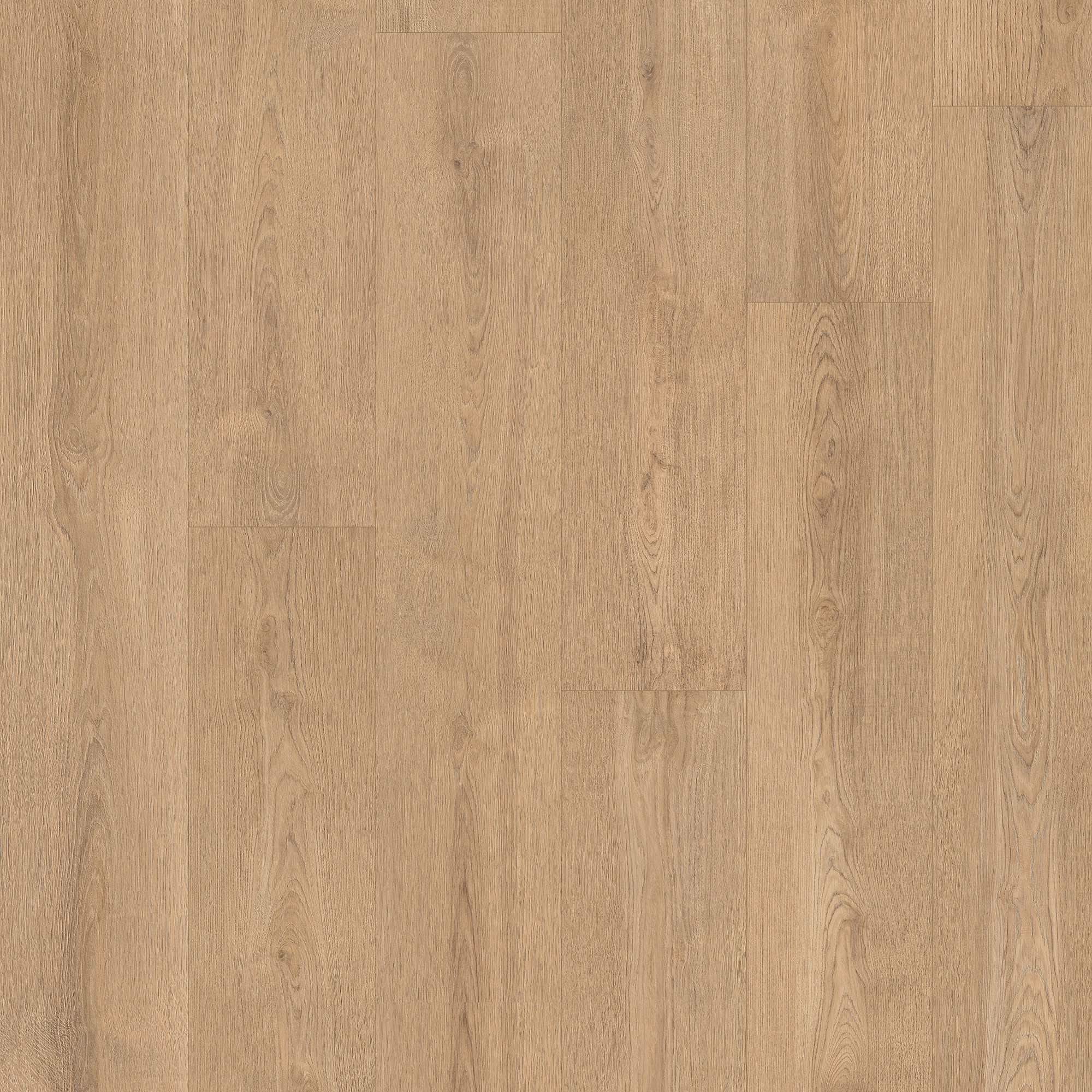 Zandkleurige eiken look met een lichte en frisse sfeer.