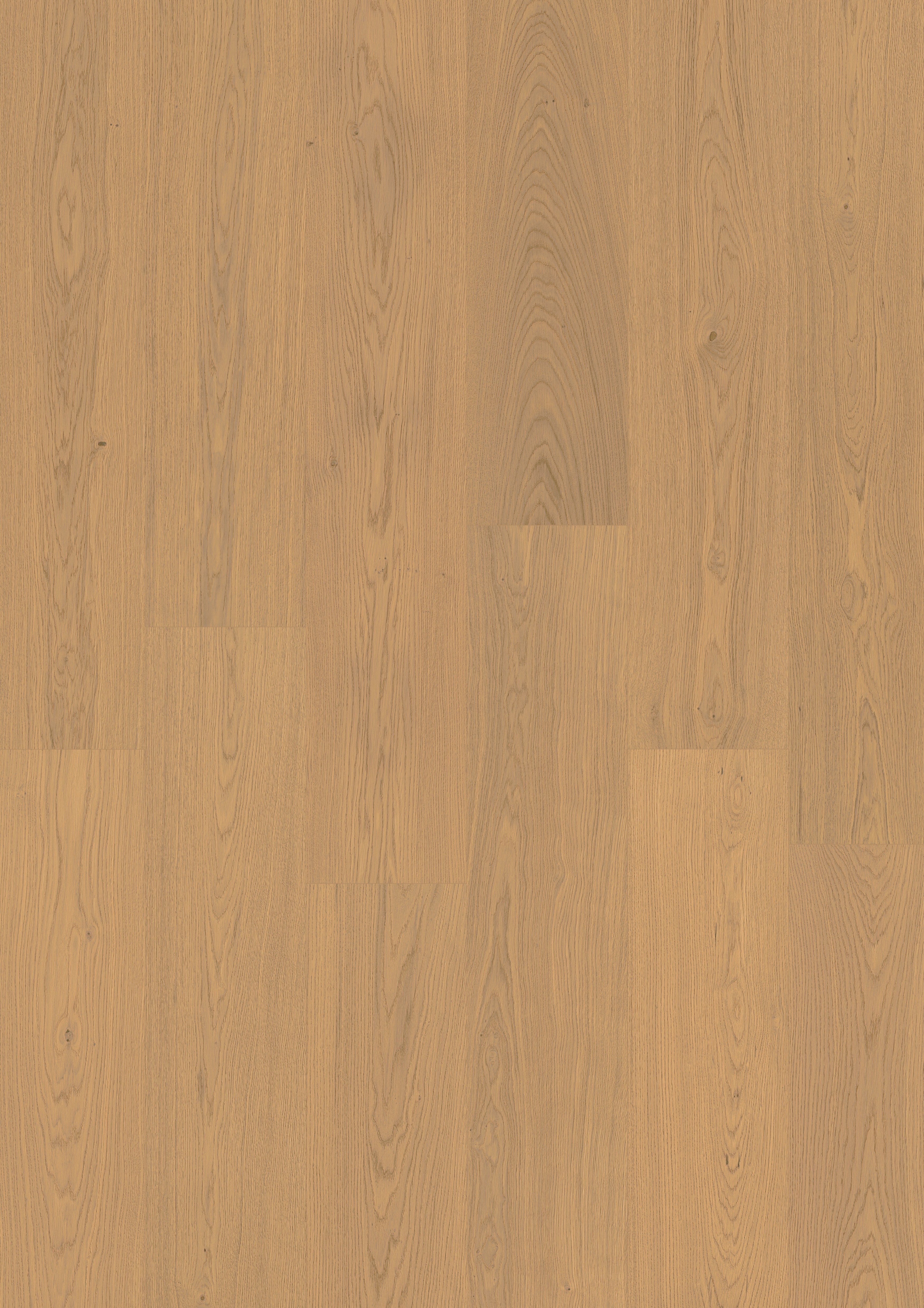 Een lichte eiken vloer met een zachte crème tint die zorgt voor een frisse en warme uitstraling. De ultramat gelakte afwerking geeft een natuurlijke look en beschermt het hout optimaal.