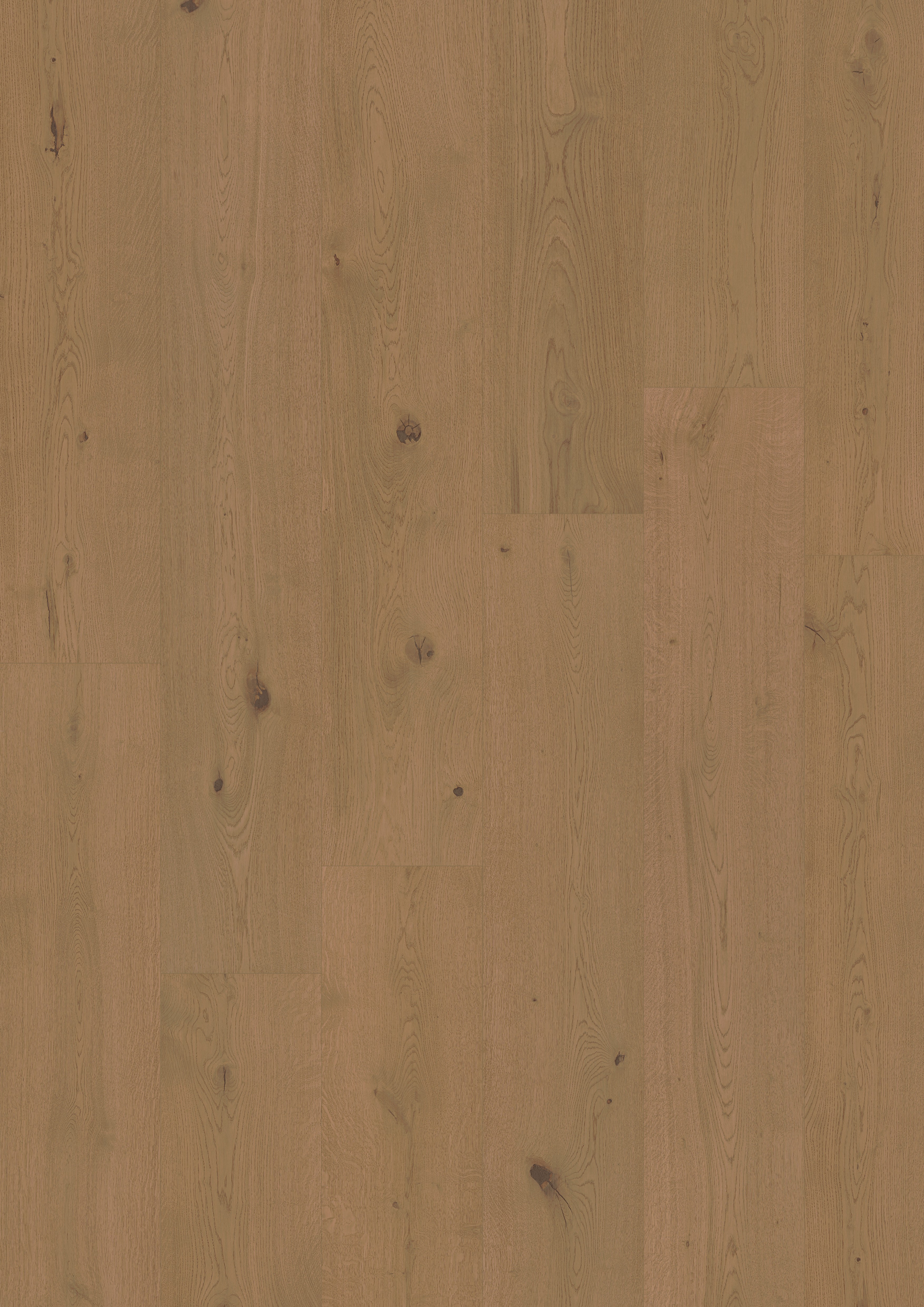 Een warme eiken vloer met een diepe leembruin tint en een authentieke uitstraling. De ultramat lak laat de houtstructuur mooi naar voren komen en beschermt intensief.
