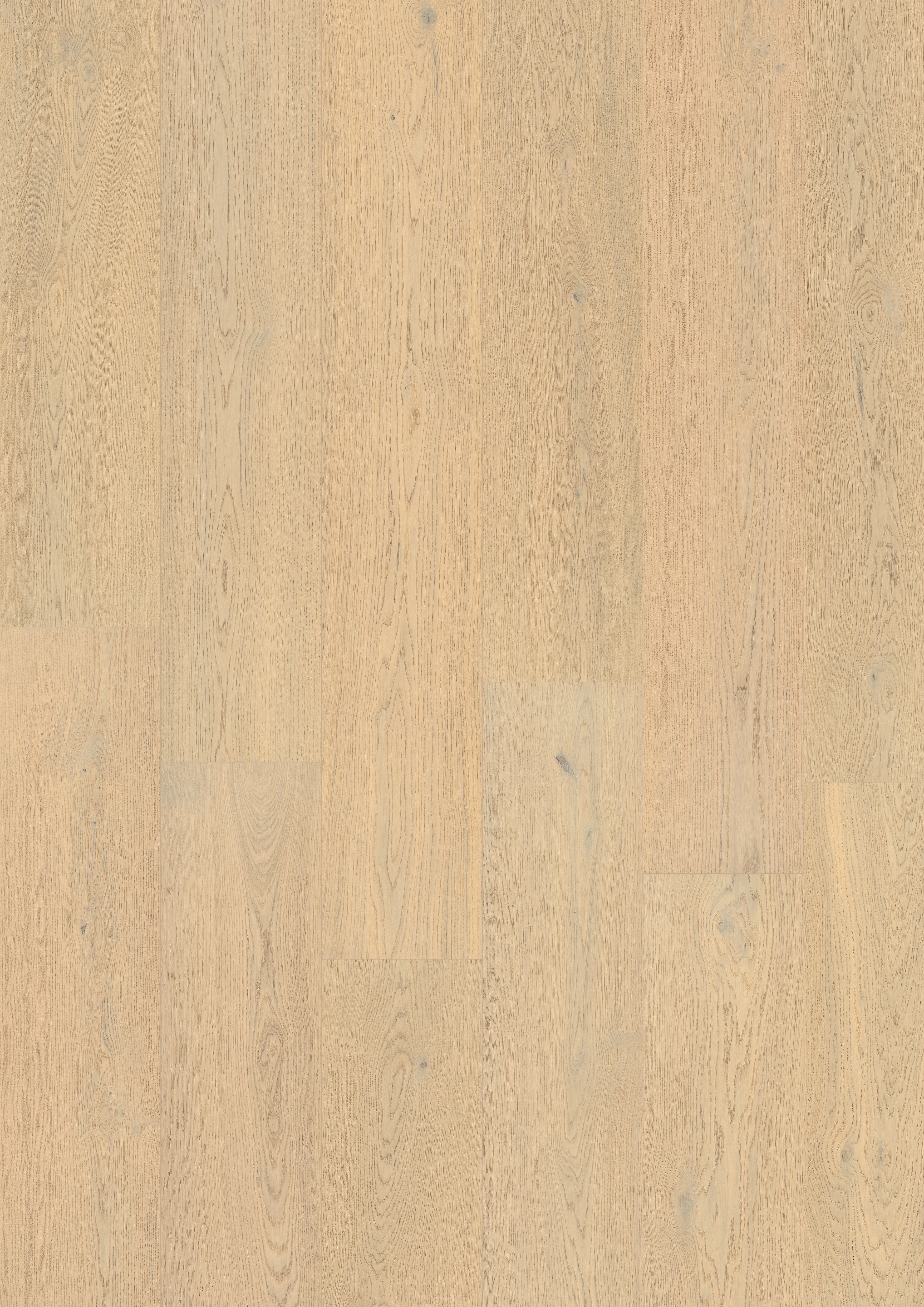 Een frisse eiken vloer met een lichte melkcrème kleur en een levendige houtstructuur. De ultramat lak zorgt voor een zachte uitstraling en beschermt tegen dagelijks gebruik.