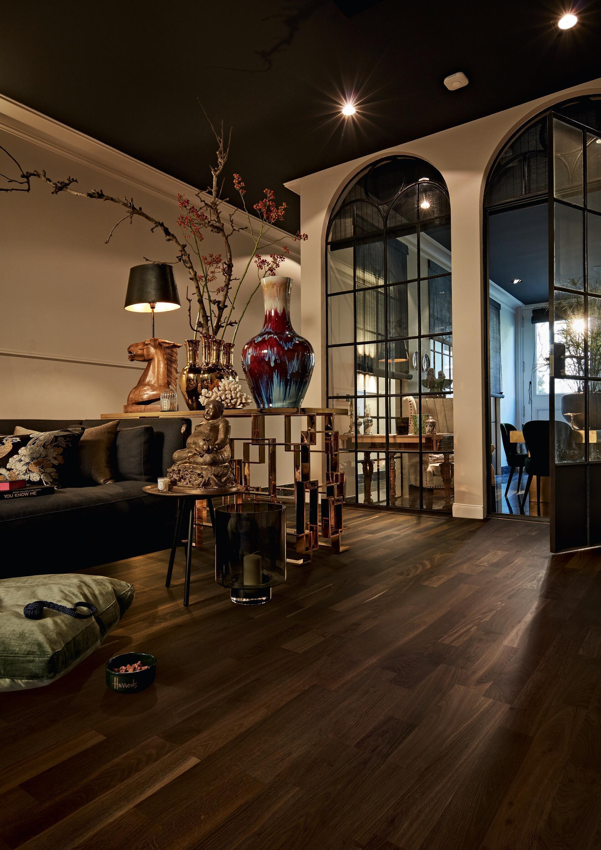 Deze vloer heeft een stoere, gerookte look die warmte en diepte toevoegt aan je kamer.