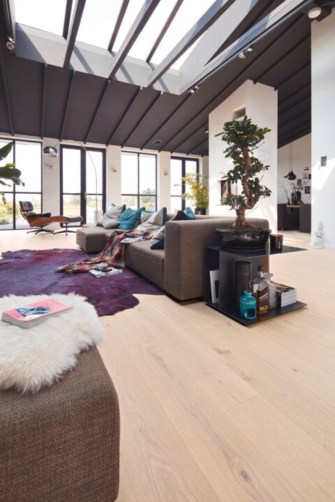 Lichte, gekalkte vloer voor een moderne en frisse uitstraling.